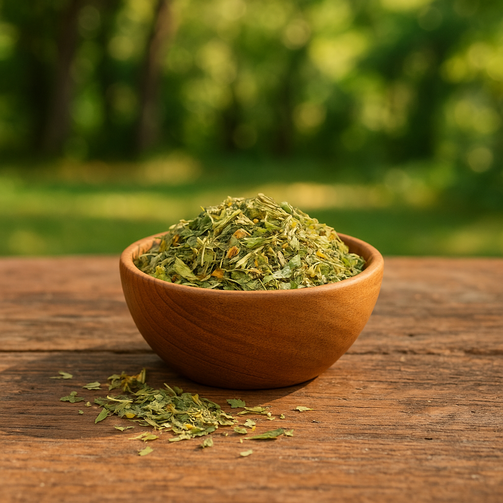 Hauseigene Kräuterteemischung mit Zutaten aus kontrolliert biologischem Anbau. Für späte Abendstunden und angenehme Träume.