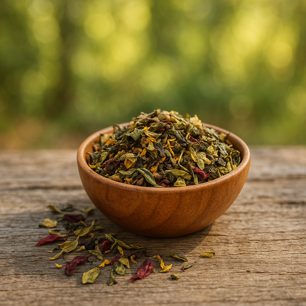 Unsere tropische Teemischung sorgt für eine gelungene Sommererfrischung mit einer süß-saftigen Mischung aus Mango-, Maracujaaroma. Ein fruchtig-frisches Geschmackserlebnis, dass dich direkt in gute Laune und Urlaubsstimmung versetzt.